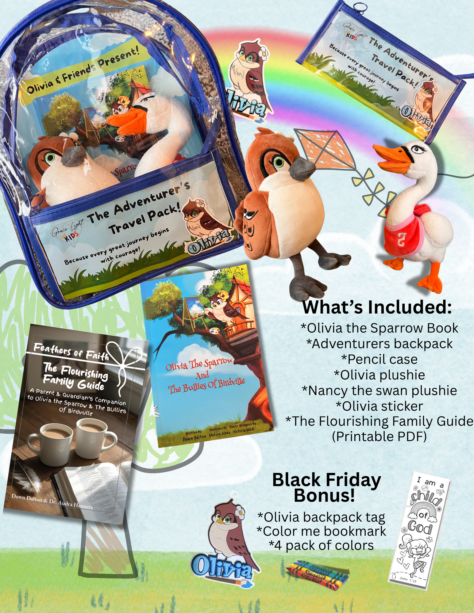 Kids today face pressures we never imagined — including bullying, comparison, and negative voices. The Olivia & Friends Adventurer’s Travel Pack was created to help children understand courage, kindness, and truth in a world that often tells them otherwise. Through characters like Olivia and Negative Nancy, kids learn how to stand strong, speak life, and recognize their identity — no matter what others say.